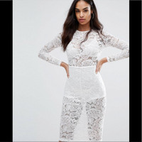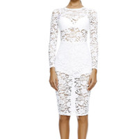 Misha Collection White See-Through Lace Midi Dress