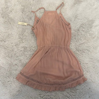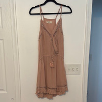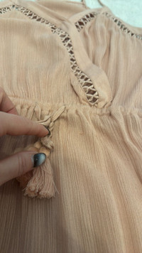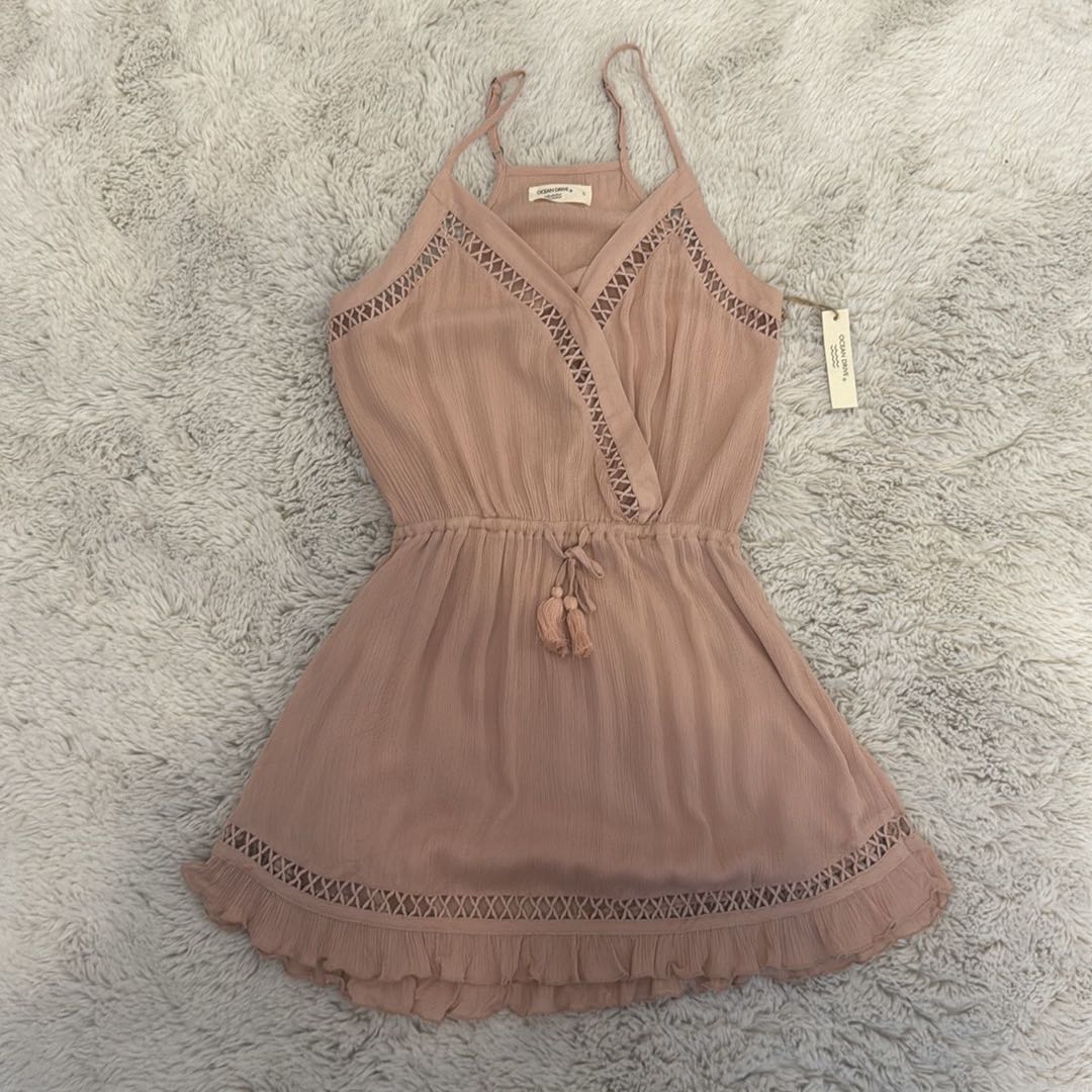 π Brand New. π Fast Shipping. A wrap-style bodice with crochet detailing along the edges, thin adjustable straps, and an elastic waistband with tassel ties. The dress has a slightly ruffled hemline, also with crochet detailing. π Approx Laying Flat Chest 20β Waist 13β (adjustable/elastic) Length 37β