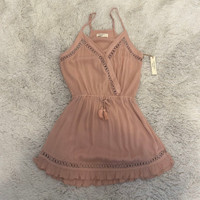Ocean Drive Blush Pink Surplice Wrap Style Dress with Crochet Ruffles Trim