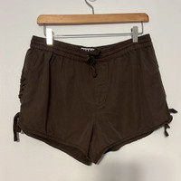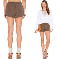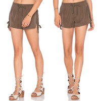Pam & Gela Lace Up Side Tencel Shorts in Olive Army Green
