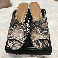 Red Dress Boutique Qupid No More Wallowing Beige Snake Print Mules