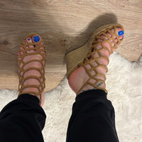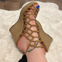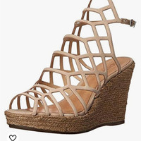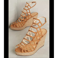 Schutz Marilyn Oyster Caged Espadrille Ankle Strap Wedge Platform Heel Sandals