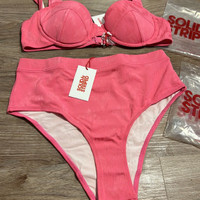 Solid & Striped LILO Pink Tonal Zig Zag High Waisted Bikini