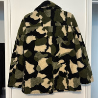Urban Outfitters Camo Sherpa Teddy Fleece Buckle Moto Aviator Jacket