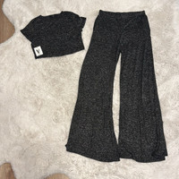 Vibe - Charcoal Heathered Soft Knit 2pc Crop Top + Wide Leg Pant Set