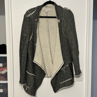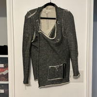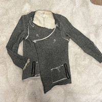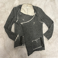 Vintage Havana Asymmetrical Raw Hem French Terry Marled Knit Moto Cardigan