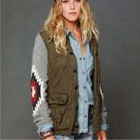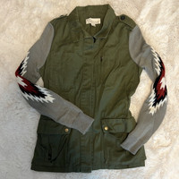 Vintage Havana Aztec Print Knit Sleeve Utility Jacket