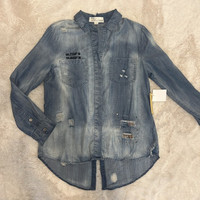 Vintage Havana Distressed Embroidered Chambray Shirt