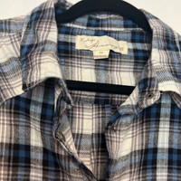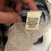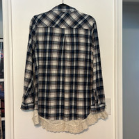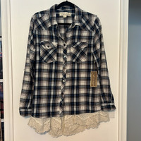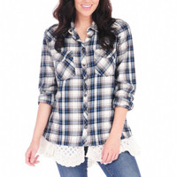 Vintage Havana Scallop Eyelet Lace Trim Plaid Shirt