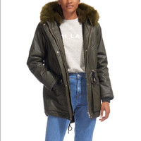 Whistles βKarlieβ Olive Waxy Fur Trim Parka