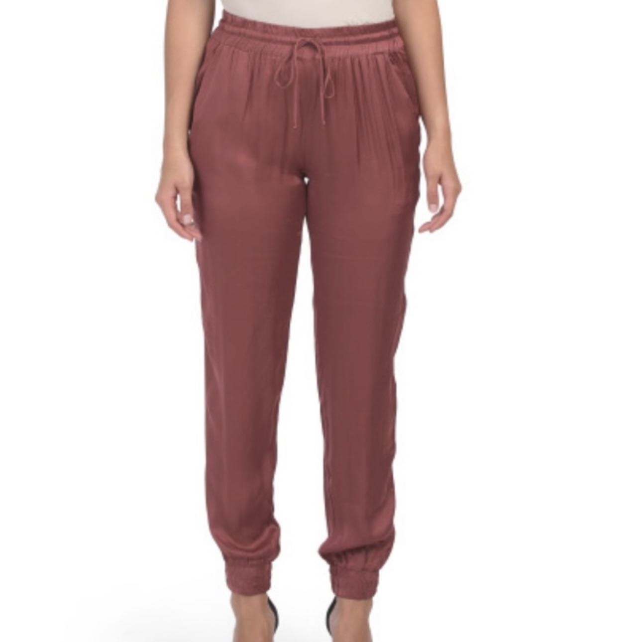 Young Fabulous & Broke Ollie Silk Satin Look Jogger Pants in Sangria