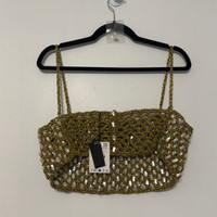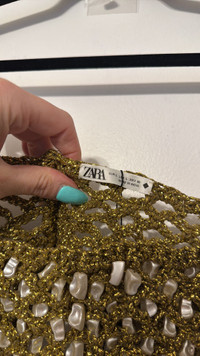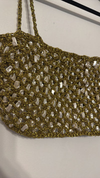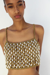 Zara Beaded Mother of Pearl Gold Crochet Embellished Crop Top