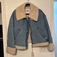 Zara Faux Shearling Denim Biker Jacket 3548/250 β¨ Brand New with Tags Attached π Rare Blogger Favorite Style π Fast Shipping π Approx Laying Flat Chest 16 1/2β Length 23β