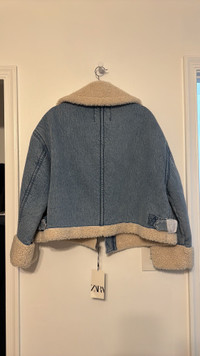Zara Faux Shearling Denim Biker Jacket 3548/250