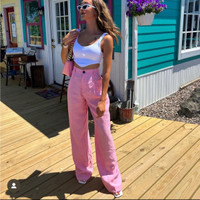 Zara Full Length Wide Leg Trouser Pants in Pastel Pink