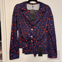 β¨ Both pieces BNWT, Size L π Electric Cheetah Tie Front Button Down Shirt & Wide Leg Pants π Fast Shipping
