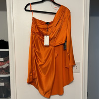 RETROFÉTE Mae Silk One-shoulder Mini Dress In Orange