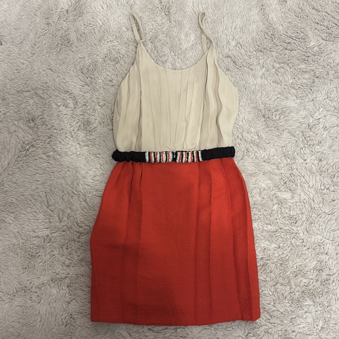 Sandro Color Block Cami Dress with Beaded Belt