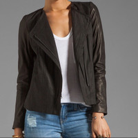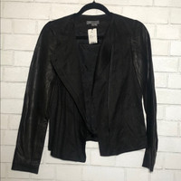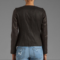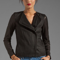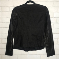 Vince Linen + Leather Sleeve Asymmetrical Jacket