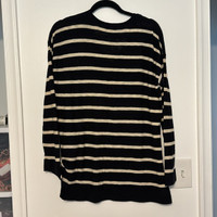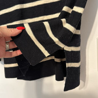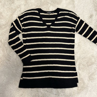 Vince V-Neck Striped Cotton Lightweight Sweater