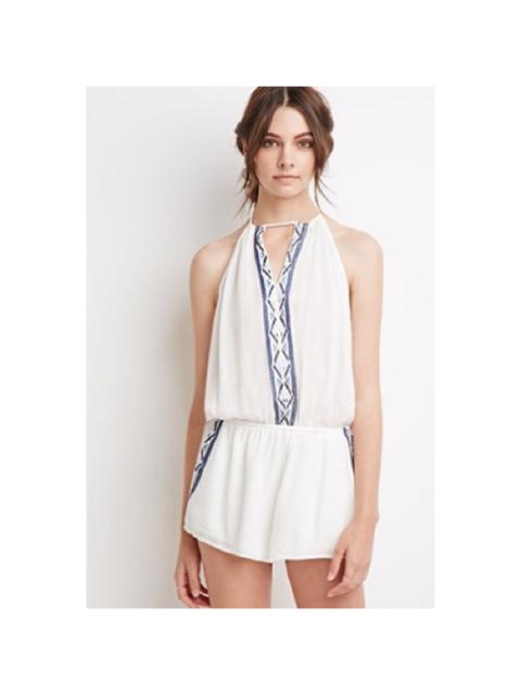 Forever 21 White Embroidered Gauze Halter Beach Romper