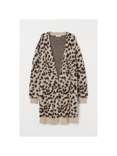 H&M Leopard Animal Print Jacquard-knit Long Cardigan