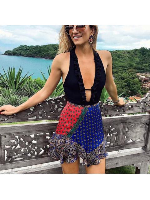 Free People Color-block Boho Print Ruffle Hem Skirt