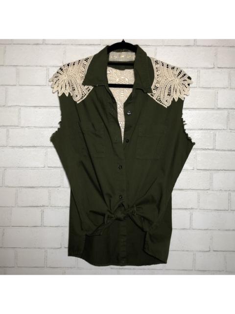 Vintage Havana Olive Lace Up Back Detail Tank Top