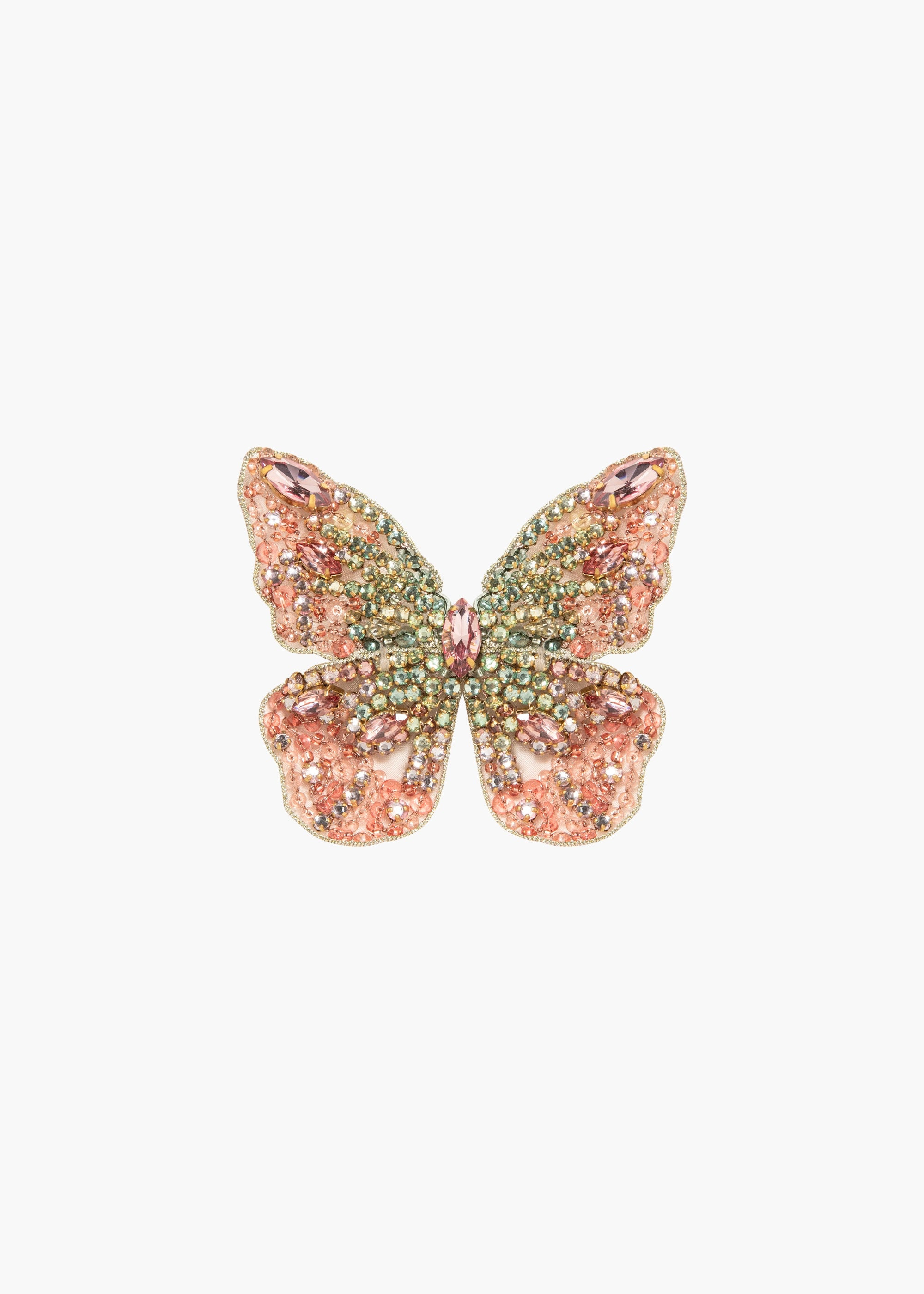 More akin to a piece of fine jewelry than a hair clip, the Absolem Barrette is made by hand in New York, with hand-embroidered Austrian crystals scattered across silk chiffon, dip-dyed to create a vivid ombre effect. Butterflies are iconic emblems of the Jennifer Behr brand, signaling spiritual rebirth and connection to the divine. The butterfly is wired by hand to create the nuanced, lifelike shape, and each one is finished with a French flip clip for secure placement anywhere in the hair— layer multiples at once for a dramatic finished look. Material The Absolem Barrette is made by hand in New York featuring a hand-embroidered Austrian crystal butterfly with French steel flip clip closure. We recommend treating this clip as you would a piece of jewelry, and storing in the dust bag when not in use. Avoid contact with water, perfume, and other chemicals, including hairspray, which should be used before placement in the hair.