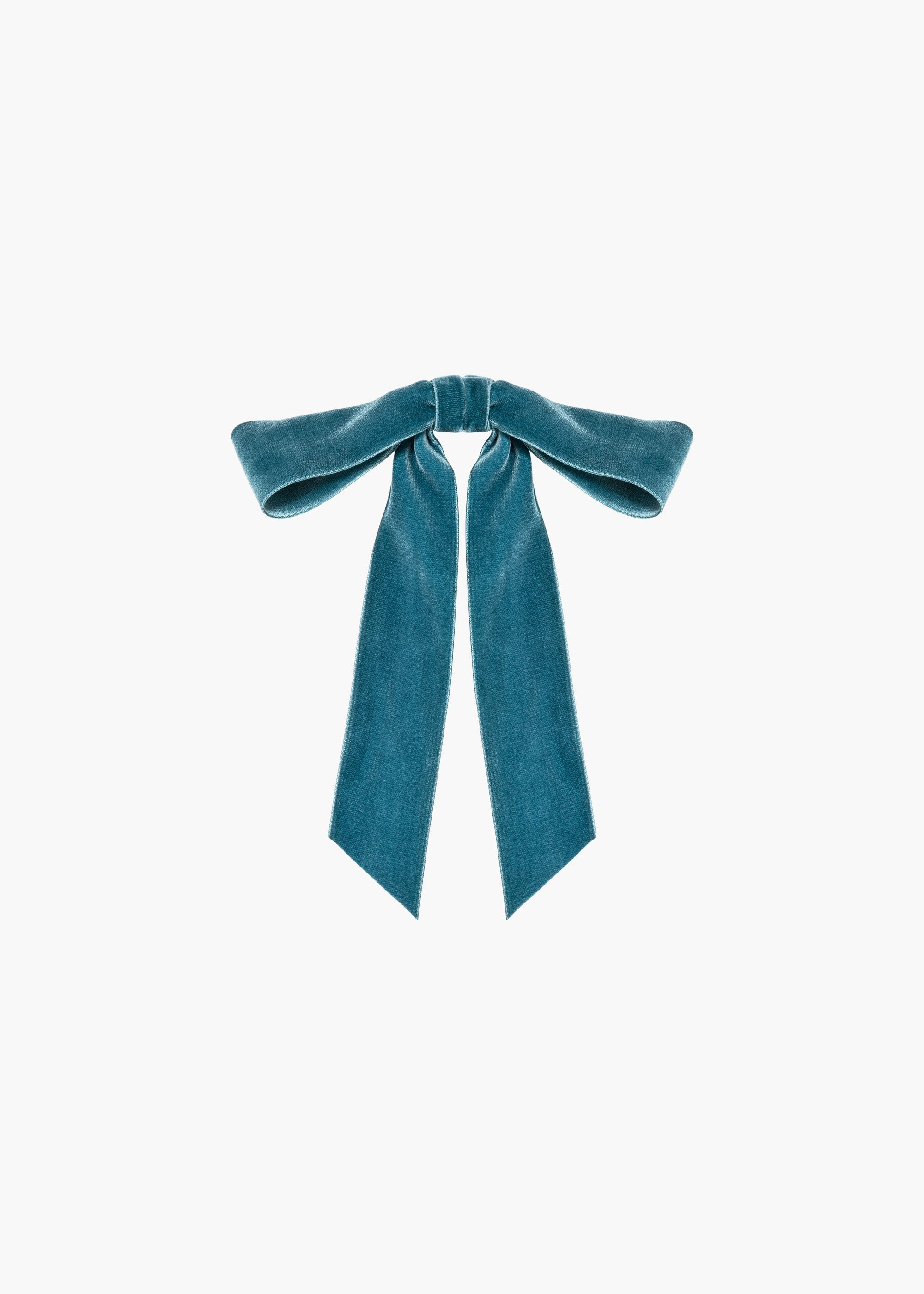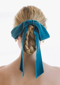 The Adley Velvet Bow Barrette is a sweet addition to our collection of Bows. The thick velvet ribbon's oversized loops are artfully draped, giving the illusion of a ribbon effortlessly tied in the hair, with the simplicity of a barrette closure. Made by hand in New York, this bow features an automatic French barrette closure, making it easy to wear in an endless number of hairstyles, in any type of hair. Dimensions: 9 inch width, 11 inch length