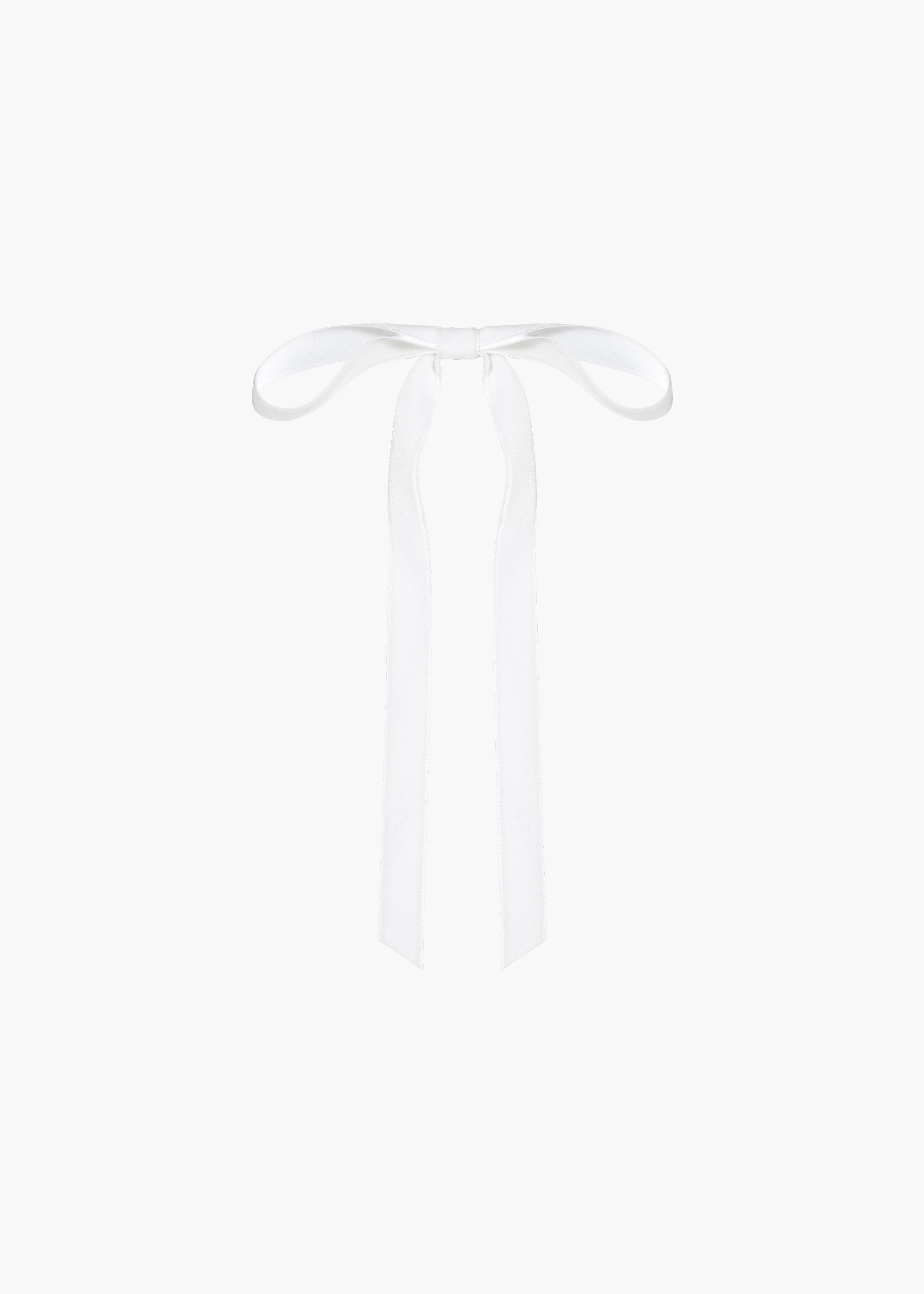 The Aida Velvet Bow Barrette exudes the effortless, whimsical look of a ribbon tied in the hair. Crafted with a fine velvet ribbon, this bow is inspired by timeless childhood heroines like Alice in Wonderland, but with a firmly sophisticated flair. Made by hand in our New York studio, this bow features an automatic French barrette closure, making it easy to wear in an endless number of hairstyles, in any type of hair. Material The Aida Bow Barrette is made by hand in New York of velvet ribbon with a steel French barrette closure. We recommend treating this bow as you would a piece of jewelry, and storing in the dust bag when not in use. Avoid contact with water, perfume, and other chemicals, including hairspray, which should be used before placement in the hair.