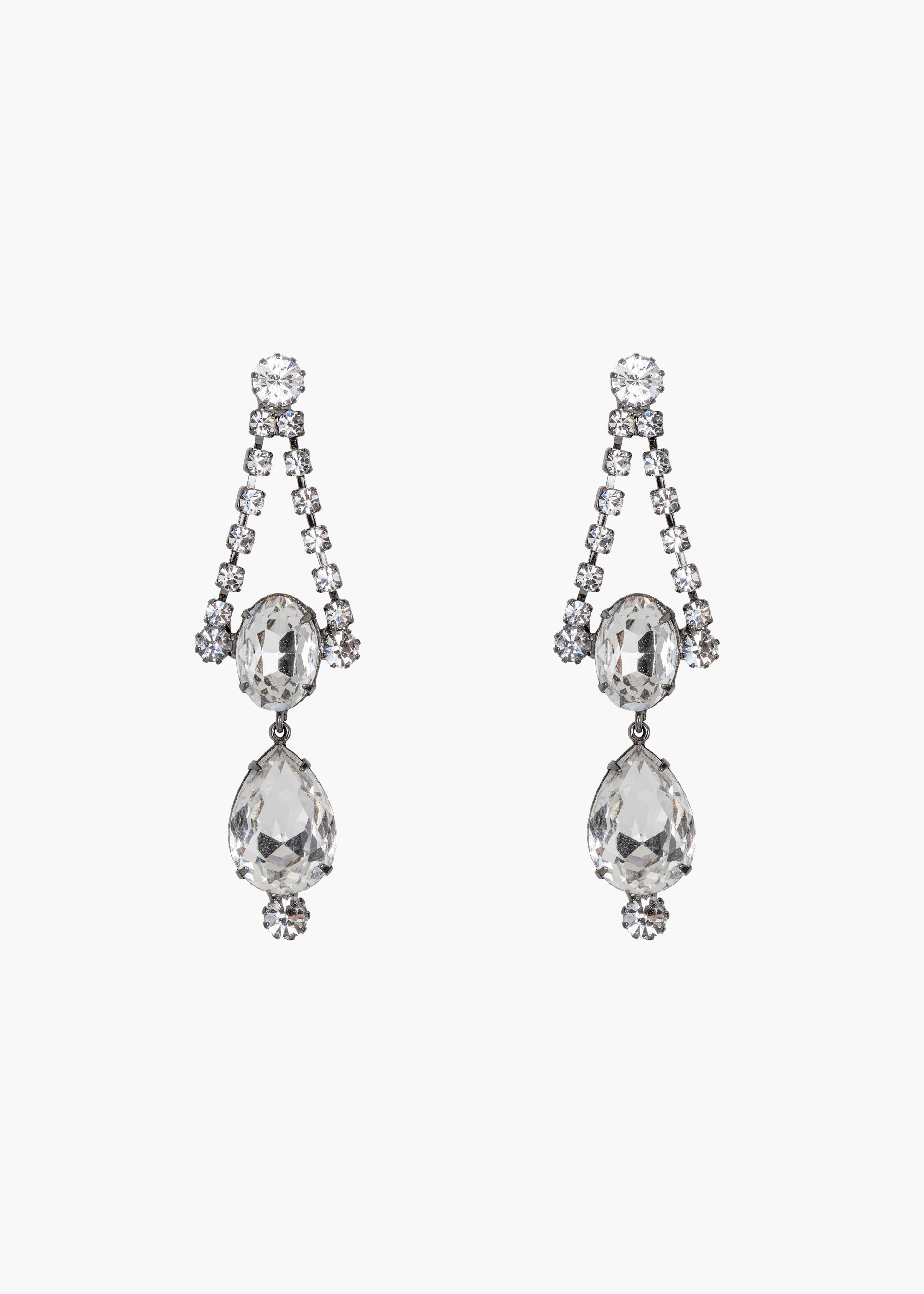 Like a shining chandelier, the Anette Earrings light up a room. These classic chandelier earrings feature a pendant of striking fine crystals, suspended from a truss of smaller stones. Made by hand in New York, they are designed with movement in mind, reflecting sparkle endlessly. Dimensions: 3 inch length Material The Annette Earrings are made by hand in New York from gunmetal plated brass and crystal. They have a surgical-steel post, are nickel-free, and safe for sensitive skin. We recommend storing earrings in their dust bag while not in use, and avoiding contact with water, perfume, hairspray, and other chemicals.
