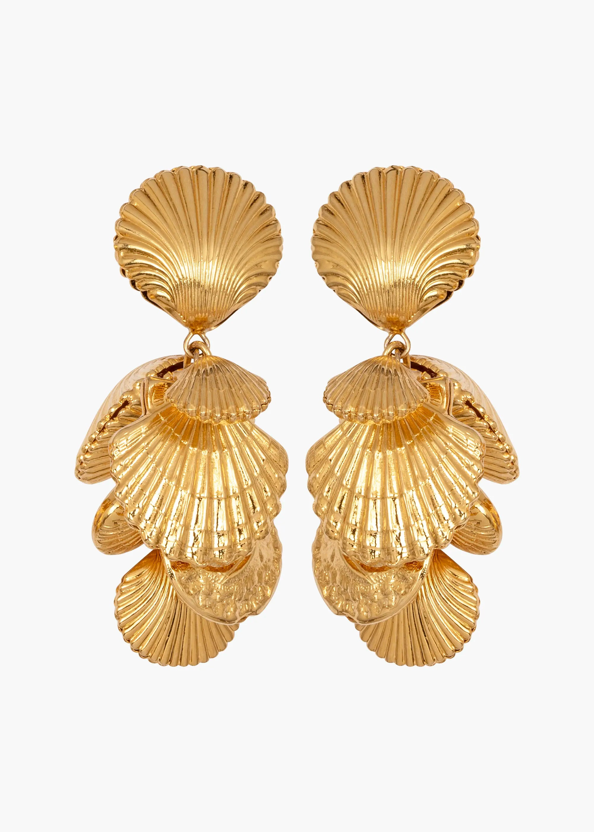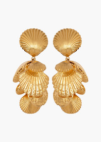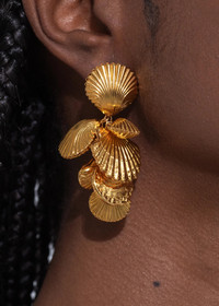 Referencing 1970s jewelry, the Aphrodite Earrings are inspired by the idea of shells collected on far-flung travels. Each charm is gathered and individually attached by hand, in a time-intensive process that creates unrivaled movement. Made by hand in New York, they are plated with 18-karat gold for exceptional luster. Dimensions: 2 3/8 inch length Material The Aphrodite Earrings are made by hand in New York from 18K gold plated brass. They have a surgical-steel post, are nickel-free and safe for sensitive skin. We recommend storing earrings in their dust bag while not in use, and avoiding contact with water, perfume, hairspray, and other chemicals.
