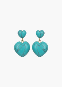 The Arely Earrings feature turquoise carved into dainty hearts for a fresh look. The smooth curves highlight the natural variations found in turquoise that make each piece unique. The hinged drop sways as you move, drawing the eye in. Dimensions: 1.125" length. Material The Arely Earrings are made by hand in New York from semi-precious stone elements. They have a surgical-steel post, are nickel-free, and safe for sensitive skin. We recommend storing earrings in their dust bag while not in use, and avoiding contact with water, perfume, hairspray, and other chemicals.