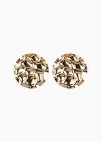 A singular conversation piece, the Azra Earrings are a dramatic disc earring. These sculptural earrings feature a hammered surface, sending boosts of shine in every direction. They are uniquely crafted by hand of a single flat sheet of brass, making them remarkably lightweight for their size. Material The Azra Earrings are made by hand in New York from 18K gold or rhodium plated brass. They have a surgical-steel post, are nickel-free, and safe for sensitive skin. We recommend storing earrings in their dust bag while not in use, and avoiding contact with water, perfume, hairspray, and other chemicals.