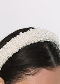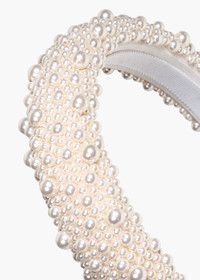 The Bailey Headband is blanketed in luminous pearls from end to end, creating a regal finishing touch. The height of this pearly headband further magnifies the Baily's wow-factor. Each headband is hand-embroidered in our Brooklyn studio, and the craftsmanship is immediately evident when worn. Dimensions: 6.5 x 6 x 2 inches; Weight: 70g Material The Bailey Headband is made in New York of pearl embellishment, and lined in silk to ensure ultimate comfort and promote hair health. We recommend treating this headband as you would a piece of jewelry, and storing in the dust bag when not in use. Avoid contact with water, perfume, and other chemicals, including hairspray, which should be used before placement in the hair.