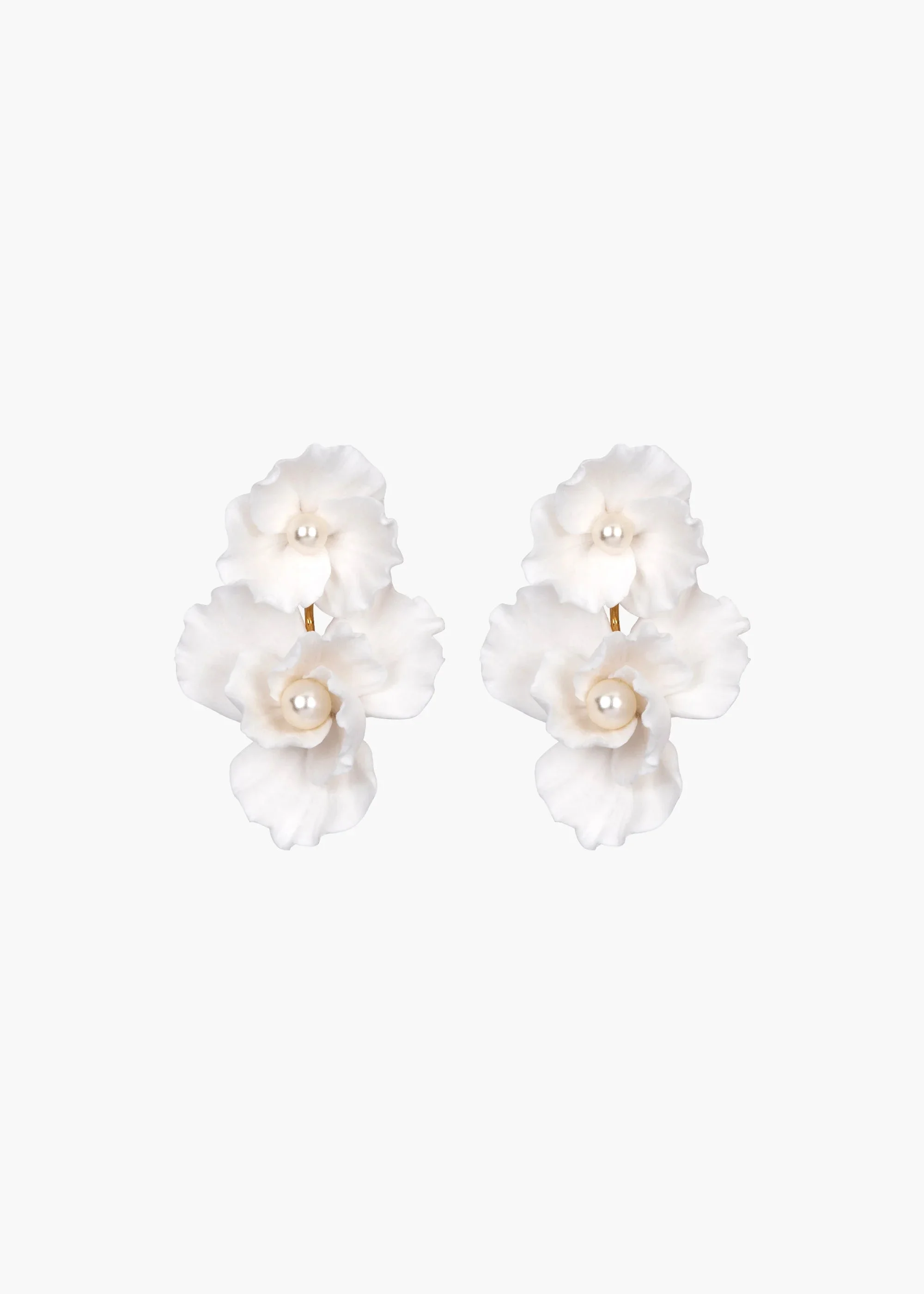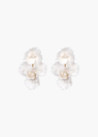 Straightforward yet breathtaking, the Briar Earrings are the dreamiest finishing touch. In a process that has been years in the making, polymer clay is hand-pressed to create each layered petal, for an incredibly realistic bloom. Finished with pearl details, these earrings pair perfectly with other pearl hair accessories and jewelry. Dimensions: 1 5/8 in x 1 in Material The Briar Earrings are made by hand in New York from Ukranian hand pressed polymer flowers with Czech crystal pearl centers. They have a surgical-steel post, are nickel-free, and safe for sensitive skin. We recommend storing earrings in their dust bag while not in use, and avoiding contact with water, perfume, hairspray, and other chemicals.