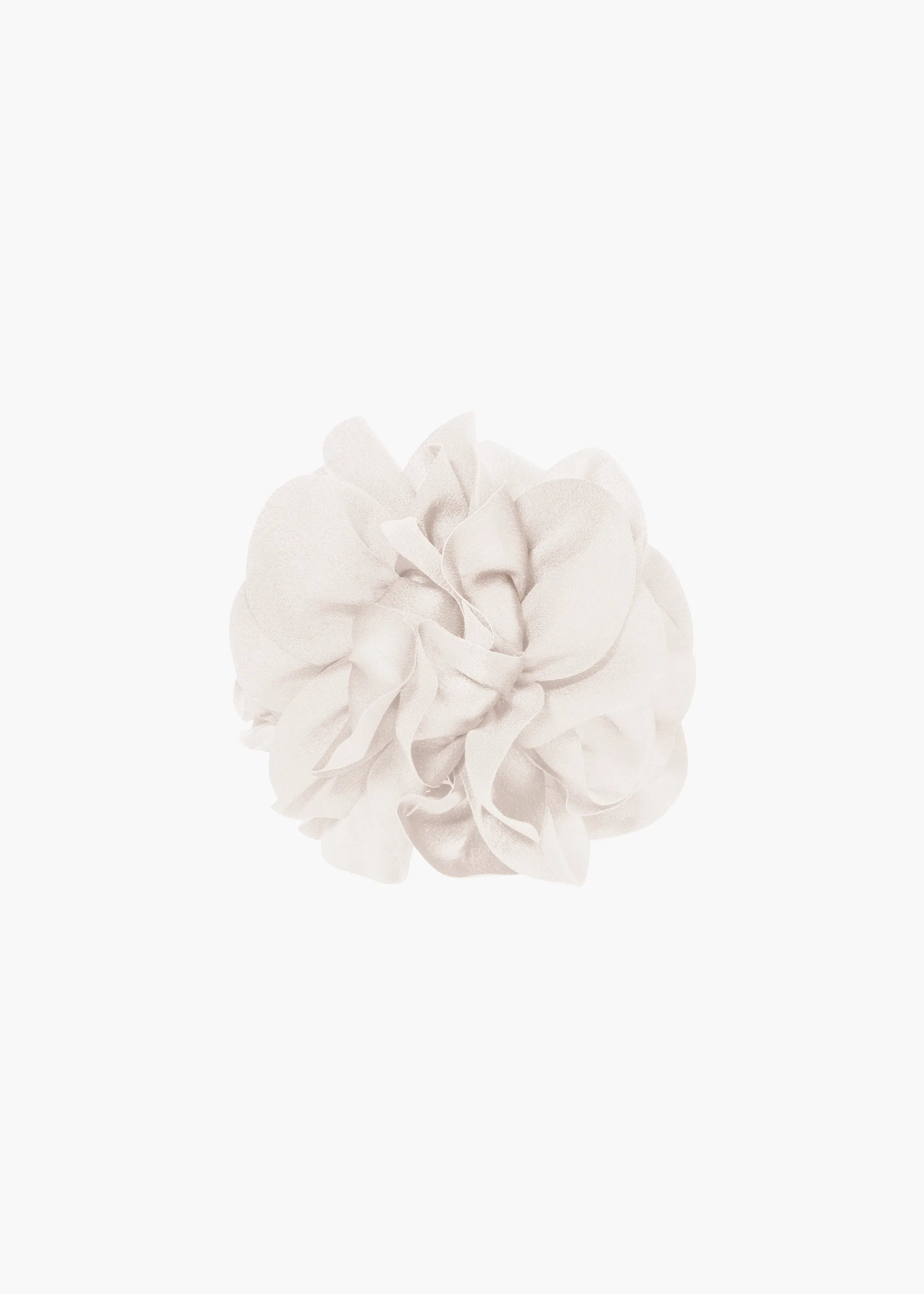 Dramatic yet endlessly wearable, the Carly Jaw Clip instantly elevates a look. Made by hand in New York, the satin is draped by hand to form the voluminous flower. It sits on a sturdy acetate jaw clip for secure placement a range of hairstyles. Dimensions: 6" width, 6" length. Material The Carly Jaw Clip is made by hand in New York of satin flowers with an acrylic resin claw clip. We recommend treating this clip as you would a piece of jewelry, and storing in the dust bag when not in use. Avoid contact with water, perfume, and other chemicals, including hairspray, which should be used before placement in the hair.