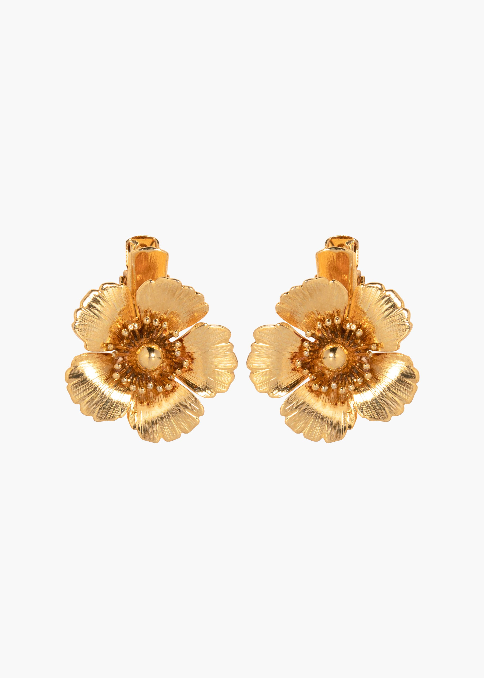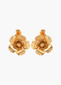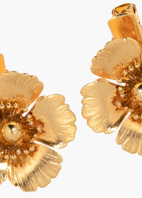 Featuring naturalistic flowers, the Collette Hair Clips set of two delivers effortless style. Crafted by hand with a lightweight gold stamping, thoughtful details, like three-dimensional stamen, contribute to a lifelike look. Each is plated with 18-karat gold and finished with an alligator clip for secure placement in the hair, and can be layered with multiple sets worn at once, and mixed with our Papillon Hair Clips set of two. Dimensions: 1 inch length, 1 inch width, 1 1/8 inch clip length Material The Collette Hair Clips are a set of two and made by hand in New York of 18K gold plated brass with French steel clip closures. We recommend treating these barrettes as you would a piece of jewelry, and storing in the dust bag when not in use. Avoid contact with water, perfume, and other chemicals, including hairspray, which should be used before placement in the hair.