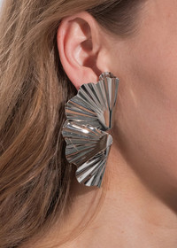 The Darya Earrings cleverly draw upon the natural ripples of the ocean in a face-framing accoutrement. The earring's sculptural ridges are imbued with kinetic energy, mimicking the motion of the sea. The organic shape combined with the high-shine silver finish creates awe-inspiring boosts of light gleaming from their surface. Dimensions: 3 inch length Material The Darya Earrings are made by hand in New York from rhodium plated brass. They have a surgical-steel post, are nickel-free, and safe for sensitive skin. We recommend storing earrings in their dust bag while not in use, and avoiding contact with water, perfume, hairspray, and other chemicals.