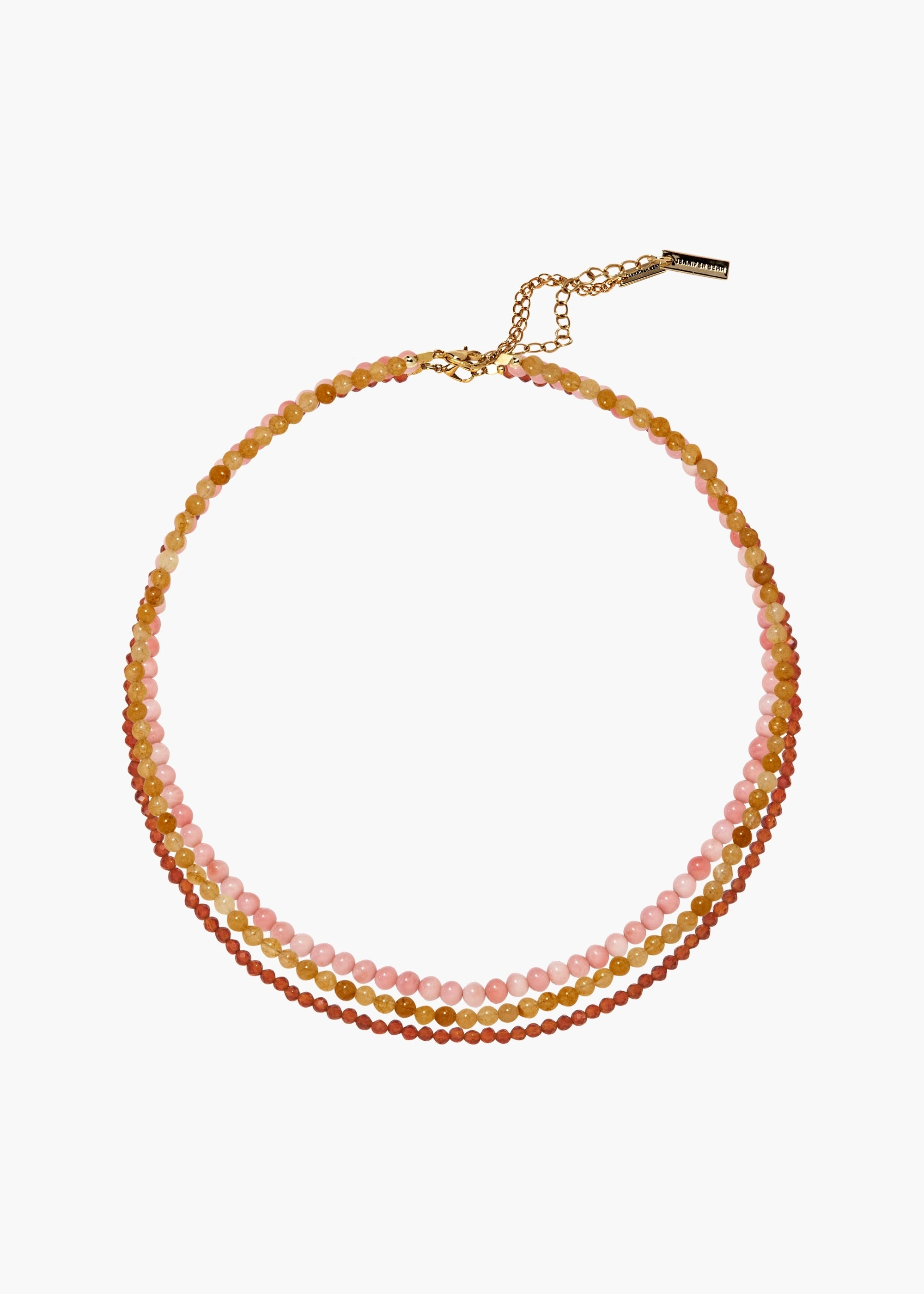 The Ersa Necklace Set of 3 instantly gives the look of a perfectly layered necklace stack, without the added effort. This set is the ideal foundation for building a necklace wardrobe, and the styling possibilities are endless— each piece can be worn solo, layered together in different combinations, or eventually mixed with other necklaces in our collection. Made by hand in New York, each necklace is finished with an 18-karat gold-plated lobster clasp and an adjustable extender chain, making it easy to achieve the perfect length in every combination. Dimensions: 19.5" length Material The Ersa Necklace set of three is handmade in New York of three natural semi-precious stone necklaces and 18K gold plated brass lobster clasp with two inch extender chain. All stones have natural variances in color and markings that make each one unique. We recommend storing necklaces in their dust bag while not in use, and avoiding contact with water, perfume, hairspray, and other chemicals.