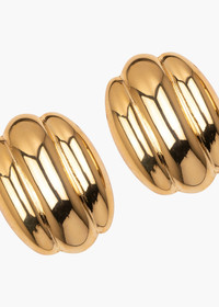 Sculptural and refined, the Gilda Earrings bring a touch of vintage elegance to any look. Each pair is hand-carved in 18K gold-plated brass, creating a softly ridged silhouette that catches the light from every angle. Finished with a comfortable surgical steel post, these studs are effortlessly striking. Material The Gilda Earrings are made by hand in New York from hand-carved 18K gold plated brass. They have a surgical-steel post, are nickel-free and safe for sensitive skin. We recommend storing earrings in their dust bag while not in use, and avoiding contact with water, perfume, hairspray, and other chemicals.