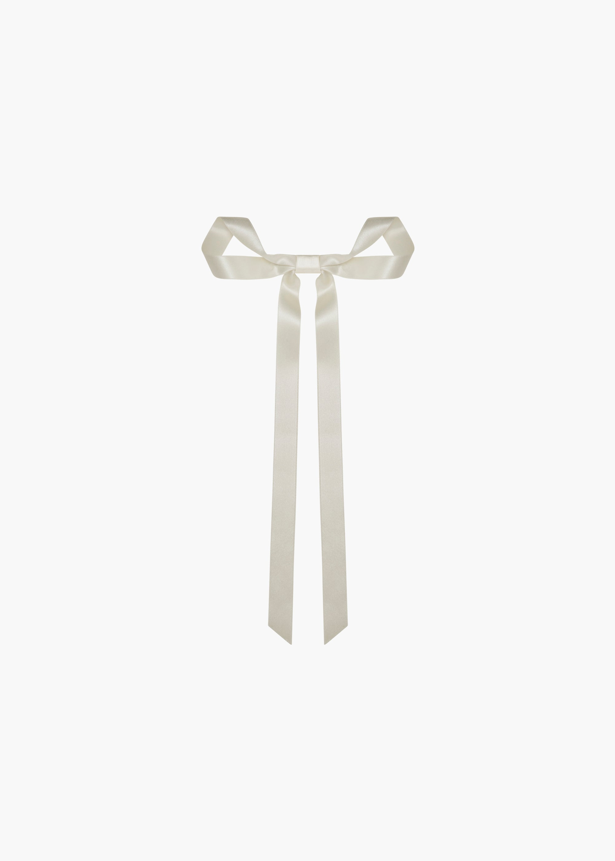 The Gretta Bow Barrette exudes the elegant insouciance of a ribbon casually tied in the hair, with the convenience of an easy-to-fasten barrette. The expertly draped silk ribbon stands out for its exceptional quality; each bow is crafted by hand in our Brooklyn studio. The automatic French barrette closure makes it versatile enough to wear in an endless number of hairstyles, in any type of hair. Material The Gretta Bow Barrette is made by hand in New York of silk ribbon and finished with a steel French barrette closure. We recommend treating this bow as you would a piece of jewelry, and storing in the dust bag when not in use. Avoid contact with water, perfume, and other chemicals, including hairspray, which should be used before placement in the hair.