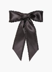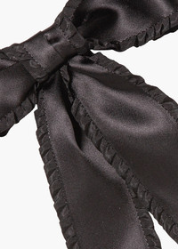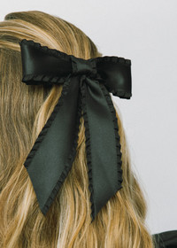 A true embodiment of our love for all-things-ruffled, the Harper Bow Barrette lends a touch of easy femininity to any look. This silk satin bow is adorned with ruffled edges, adding an unexpected textural element. Each bow is expertly sewn by hand in our Brooklyn studio, and features an automatic barrette closure, making it easy to style a multitude of ways. Material The Harper Bow Barrette is made by hand in New York of silk satin ribbon with a steel French barrette closure. We recommend treating this bow as you would a piece of jewelry, and storing in the dust bag when not in use. Avoid contact with water, perfume, and other chemicals, including hairspray, which should be used before placement in the hair.