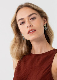 The Hattie Earrings blur the line between fine and costume jewelry, combining semi-precious stones with Austrian crystal details. The flowers are hand-carved of chalcedony, a natural gemstone found inside geodes, known for its calming energy. Made by hand in New York, each flower is set with a contrasting crystal center. Material The Hattie Earrings are made by hand in New York from hand-carved semi-precious stone flowers, Austrian crystals, and 18K gold plated brass. All stones have natural variances in color and markings that make each one unique. They have a surgical-steel post, are nickel-free and safe for sensitive skin. We recommend storing earrings in their dust bag while not in use, and avoiding contact with water, perfume, hairspray, and other chemicals.