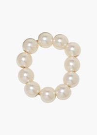 Whether wrapped-around a pony, twisted on a bun, or even securing some pigtails, the Henley Pony wrap is a playful way to "put it up". This Swarovski crystal pearl ponywrap is handmade in our Brooklyn studio and finished with a golden elastic cord. Material The Henley Pony Wrap is made in New York from faux pearls and finished with a golden elastic cord. We recommend treating this piece as you would a piece of jewelry, and storing in the dust bag when not in use. Avoid contact with water, perfume, and other chemicals, including hairspray, which should be used before placement in the hair.