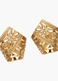 The Jeanine Earrings are a collaboration between Jennifer Behr and French-American creator Leanne Ansar, known for her signature brand of digital storytelling that transports the viewer into a world of fantasy, where dreams become reality. An earring for day-to-day dressing and special occasions alike, Leanne imagines Jeanine as a woman with windswept hair, wandering a museum rich with Florentian culture, admiring the works of da Vinci and Botticelli, and allowing this to inspire her daily dress. Made by hand in New York with an 18-karat gold-plated finish, their fantastical shape is an enhanced version of an everyday hoop, created with a piece of vintage gallery wire— a material most often used in architectural design. Please note that due to high order volume, we will not be able to process overnight or 2-day shipping for the Jennifer Behr x Leanne Ansar collaboration collection. Dimensions: 2 inch length Material The Jeannine Earrings are made by hand in New York from 18K gold plated brass. They have a surgical-steel post, are nickel-free, and safe for sensitive skin. We recommend storing earrings in their dust bag while not in use, and avoiding contact with water, perfume, hairspray, and other chemicals.