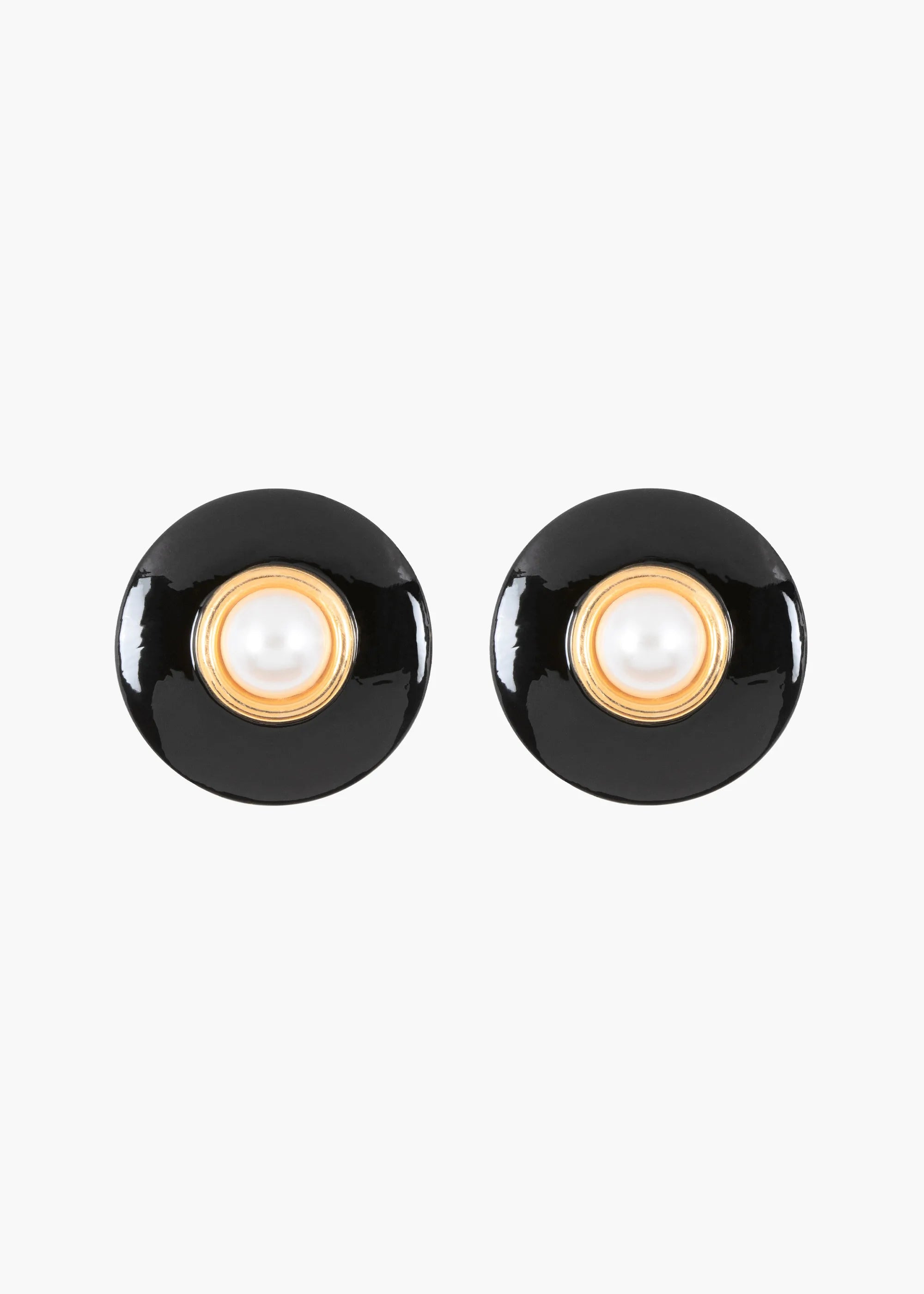 For this collaboration with Leanne Ansar, Leanne and Jennifer were inspired by their like-minded approach to fashion as a form of storytelling, and the Lili Earrings are a persona of their own, evoking the spirit of the title character of the 1958 film Gigi—cheeky, elegant, and endlessly confident. An ode to fateful encounters, these oversized studs are inspired by a vintage earring dear to Leanne, purchased in New York and eventually lost in Paris on a night out dancing with her now-fiance. Made by hand in New York, the circular shape and hand-painted black enamel surface accentuate the jawline to highlight the face, making these Leanne's go-to earrings to feel confident in any room she walks into. Please note that these earrings are hand enameled in our Brooklyn studio. All enamel will have slight variation from earring to earring, and should be treated with care. Please store in the provided dust bag when not in use, avoid contact with hairspray and other chemicals, and only clean with a damp cloth. Please note that due to high order volume, we will not be able to process overnight or 2-day shipping for the Jennifer Behr x Leanne Ansar collaboration collection. Dimensions: 1.75 inch length Material The Lili Earrings are made by hand in New York from hand-enameled 18K gold plated brass and Austrian crystal pearls. All enamel will have slight variation from earring to earring, and should be treated with care. They have a surgical-steel post, are nickel-free, and safe for sensitive skin. Please store in the provided dust bag when not in use, avoid contact with water, perfume, hairspray and other chemicals, and only clean with a damp cloth.