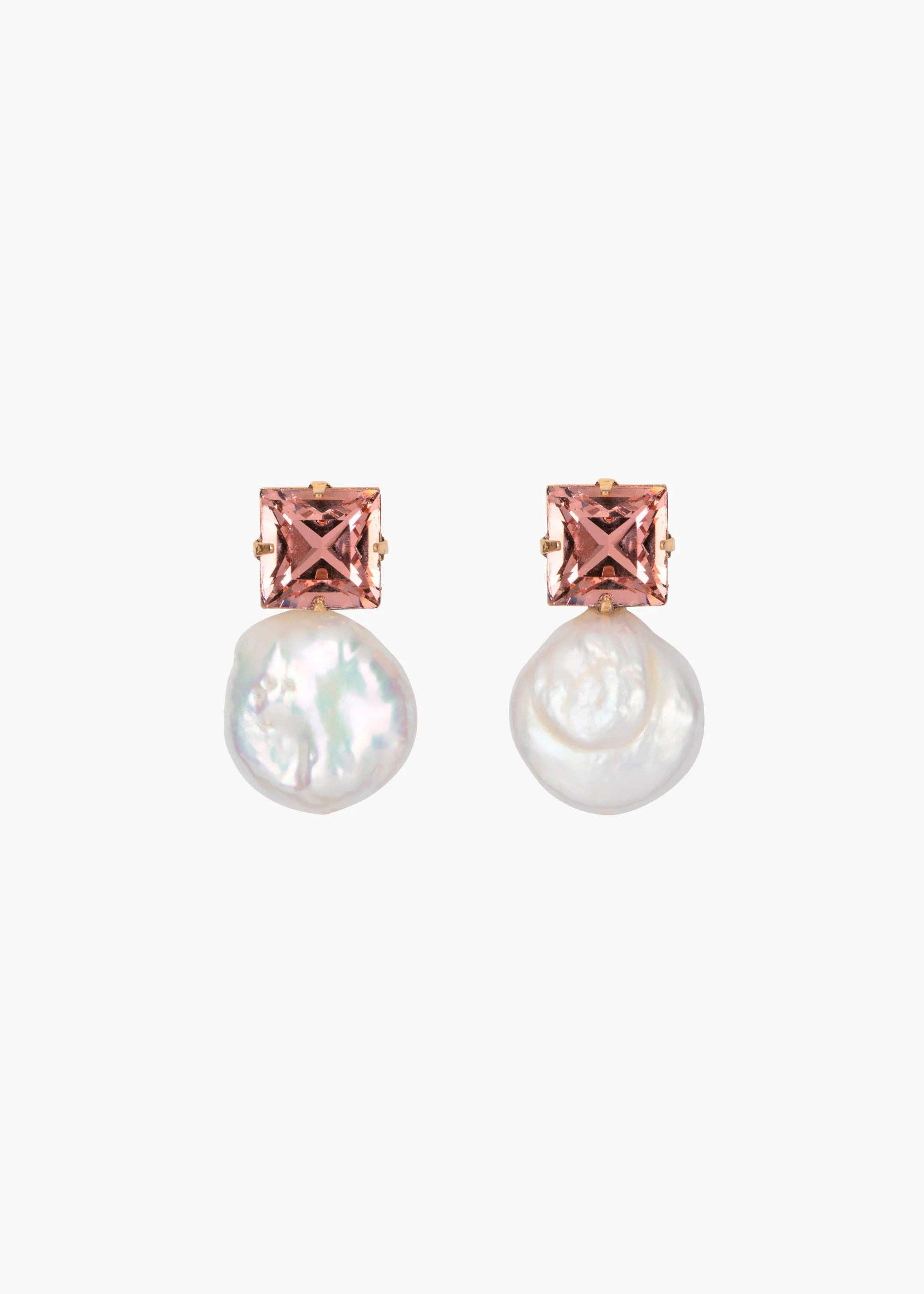 Designed to transition seamlessly from a breezy summer day to an evening outing, the Junia Earrings combine sparkling crystals with freshwater baroque pearls. The rigid shape of the square-cut crystals is cleverly offset by the pearl's naturally rotund shape. We adore freshwater pearls because each stone is entirely unique— making each pair one-of-a-kind. Dimensions: 7/8 inch length Material The Junia Earrings are made by hand in New York from 18K gold plated brass, Czech crystals, and freshwater baroque pearls. They have a surgical-steel post, are nickel-free and safe for sensitive skin. We recommend storing earrings in their dust bag while not in use, and avoiding contact with water, perfume, hairspray, and other chemicals.