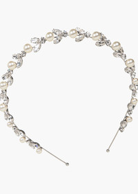Delicate yet impactful, the Kamila Headband leaves all eyes on you. A vine of crystal flora is punctuated by lustrous pearls, with a raised silhouette subtly suggesting the height of a tiara. The fine headband base disappears into the hair, creating the sublime illusion of gems magically afloat. Pair with the matching Kaide Earrings . Material The Kamila Headband is made in New York of rhodium plated brass, crystals, and crystal pearls on a thin and flexible headband, which is designed to disappear in the hair and ensure hours of comfort. We recommend treating this headband as you would a piece of jewelry, and storing in the dust bag when not in use. Avoid contact with water, perfume, and other chemicals, including hairspray, which should be used before placement in the hair.